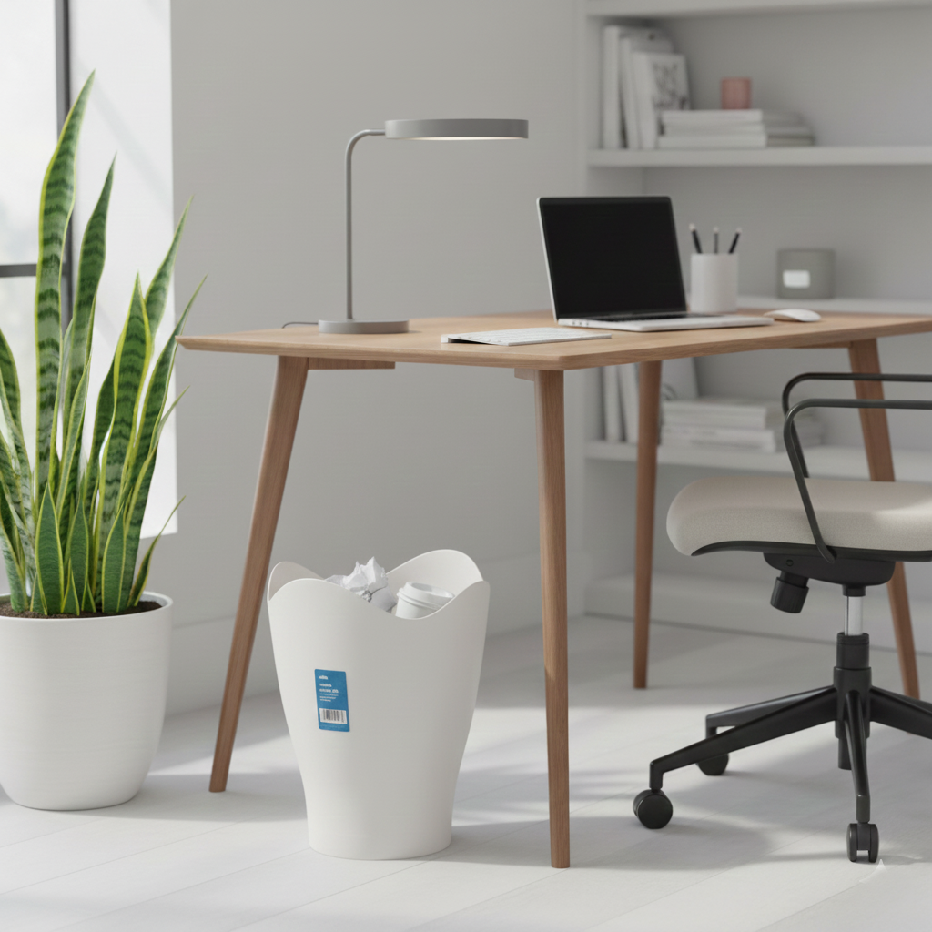 COMPACT 12 LITRE BIN: A practical 12-litre waste paper bin, perfectly sized for any room in the house including the home office, bedroom, study, or bathroom, offering a neat, compact solution.