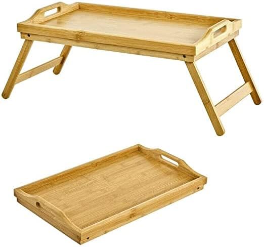 A-Z ® Bed Breakfast Tray | Bed Tray Table | Lap Tray with legs can be Used on Bed, Sofa for Food, Snacks, Tea | Bamboo Serving Trays Easy to Clean, Natural Brown (Brown, 50 x 25 x 40 cm)