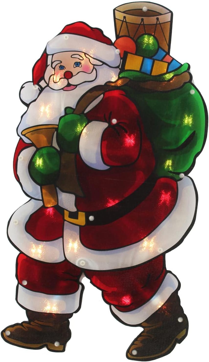 A-Z Pre-Lit 20 LED light 45 cm Santa Sack, Snowman Post, Snowman Broom, Santa Train Double Sided Window Silhouette Christmas Decoration Mains Powered [Energy Class A++] (Santa Sack)