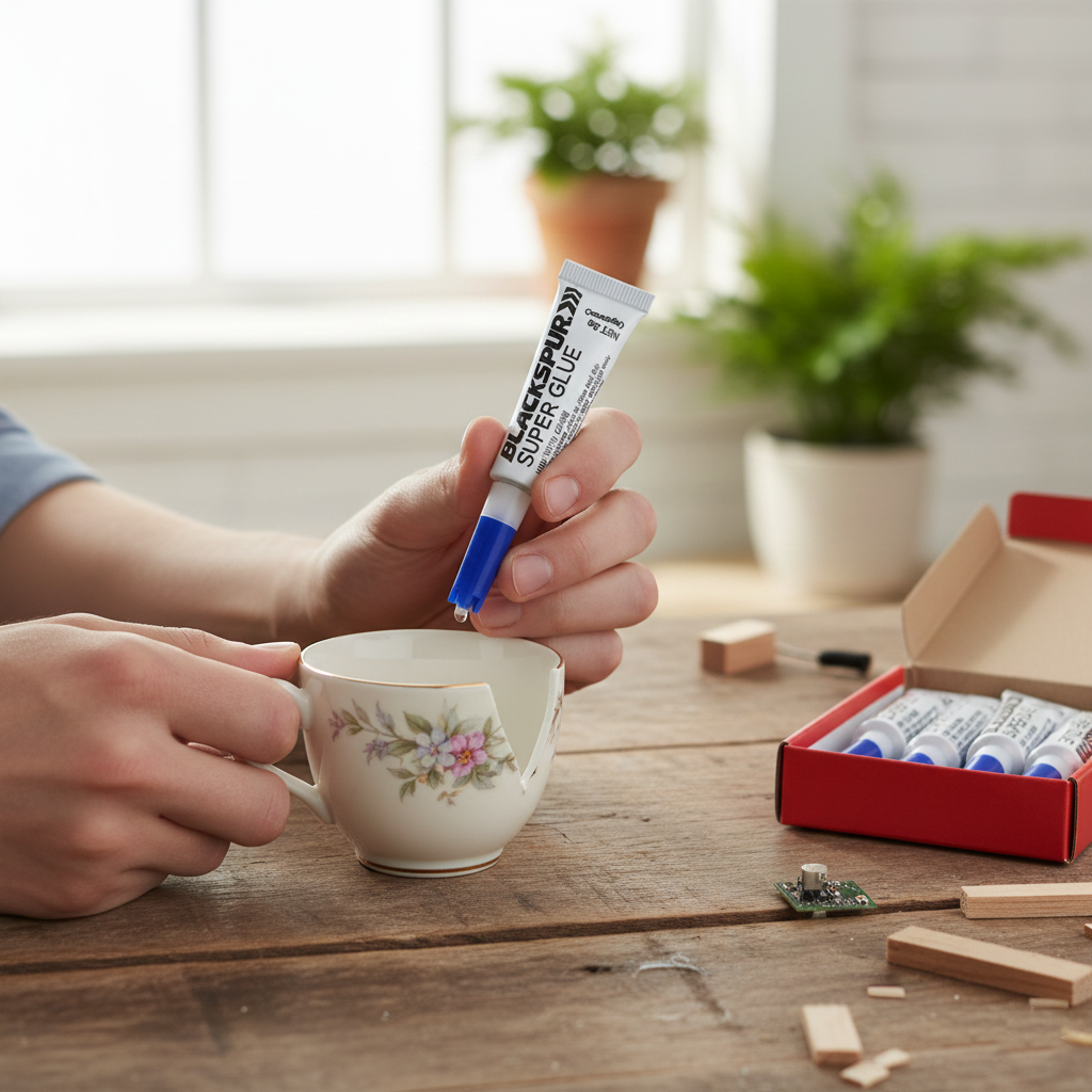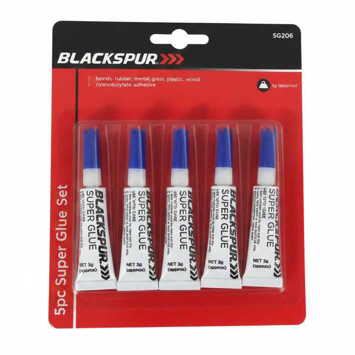Fix it fast with the Blackspur 5Pc Super Glue Set. Strong, quick-bonding clear adhesive suitable for glass, ceramic, plastic, metal and rubber. Each tube contains 3g, perfect for small repairs, DIY projects, home use or workshops. Compact, easy to use and ideal for everyday fixes.